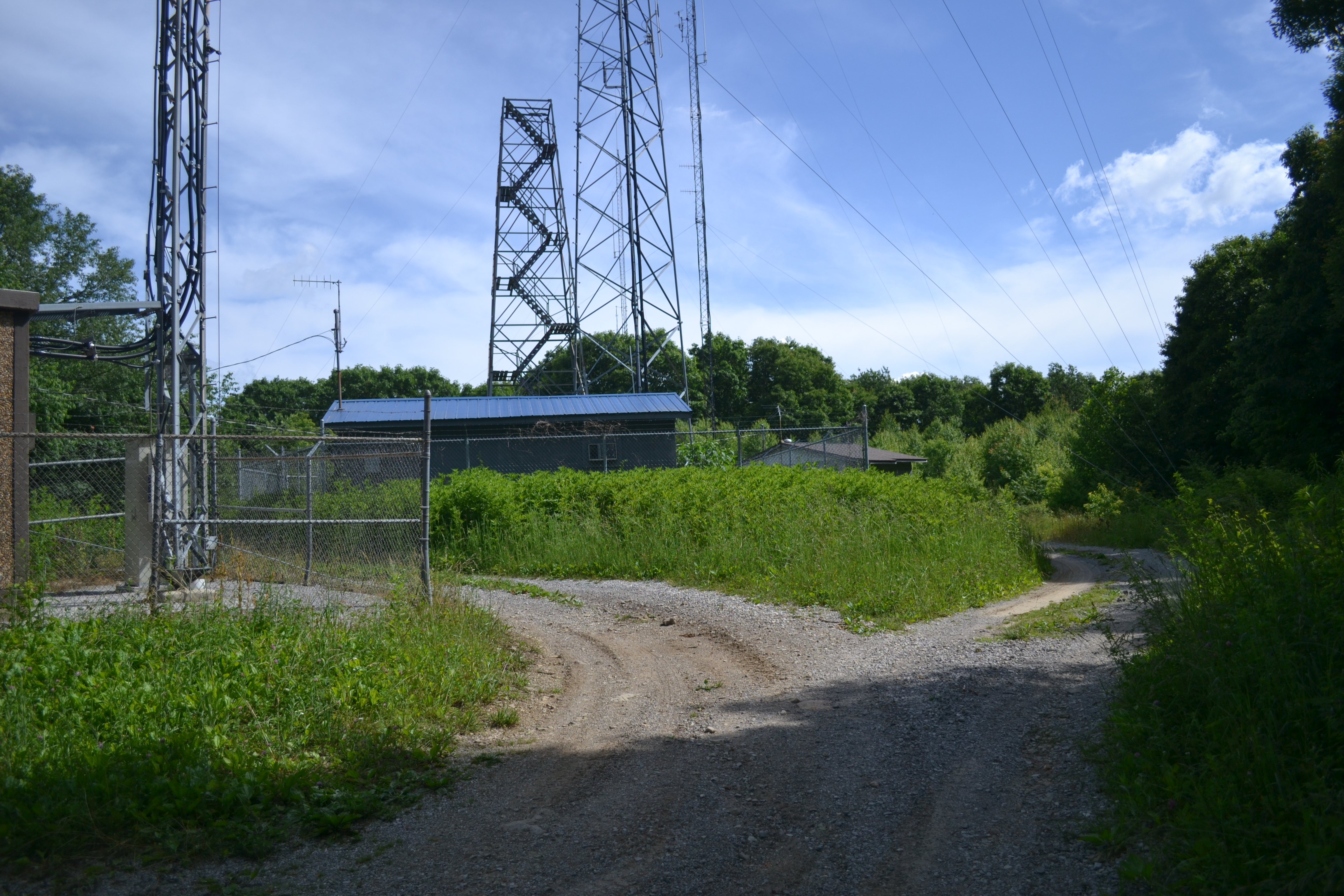 The fork in the road is not far past the radar. The road to the right goes to a different area of the mountain, so choose the path on the left to reach the summit of Black Mountain. Once there, the view is somewhat sad in that there is just a bunch of abandoned buildings. Just off to the left (I’m not great with actual directions) of the fire tower, there is a short footpath that will lead to the highpoint marker.